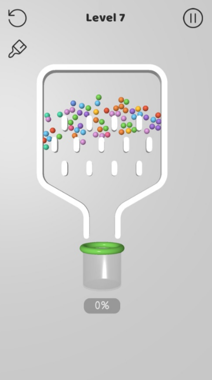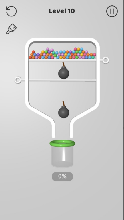 别针大师是一款关于别针的益智闯关游戏,不到最后一关,根本停不下来,这是超级挖坑大师策划大大所设计的物理游戏,你以为只是简单的收集彩色小球,既然是挖坑大师肯定不会这么简单,看到游戏里面的黑色小球了吗?你要让它掉落时与被彩色小球染色之后才可以收集难度有点大,准备好燃烧你的大脑吧!