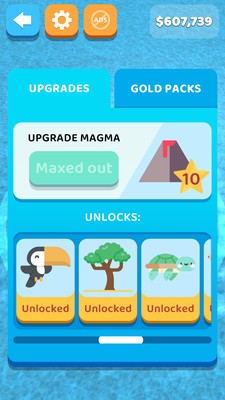 1、玩家可以通过最简单的操作方式,解锁更多的美丽场景,让火山小岛上的岩浆喷发。