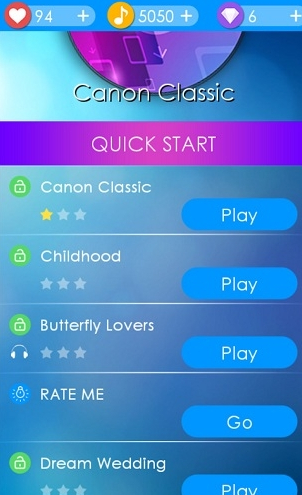 钢琴瓷砖游戏是一款趣味十足的钢琴音乐节奏类型的休闲游戏。钢琴瓷砖游戏中很简单化,画风非常精美加上炫酷的特技,全新的玩法非常博人眼球,游戏中会自带钢琴曲库,玩家们能选择自己喜欢的音乐来进行弹奏歌曲,跟着节奏进行玩耍就行啦,游戏非常类似于节奏大师,兴趣的赶紧下载钢琴瓷砖游戏挑战一番。