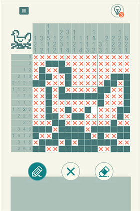 具有可玩性的数图谜题,掌握各种阶梯的线索,还有方便的涂黑工具