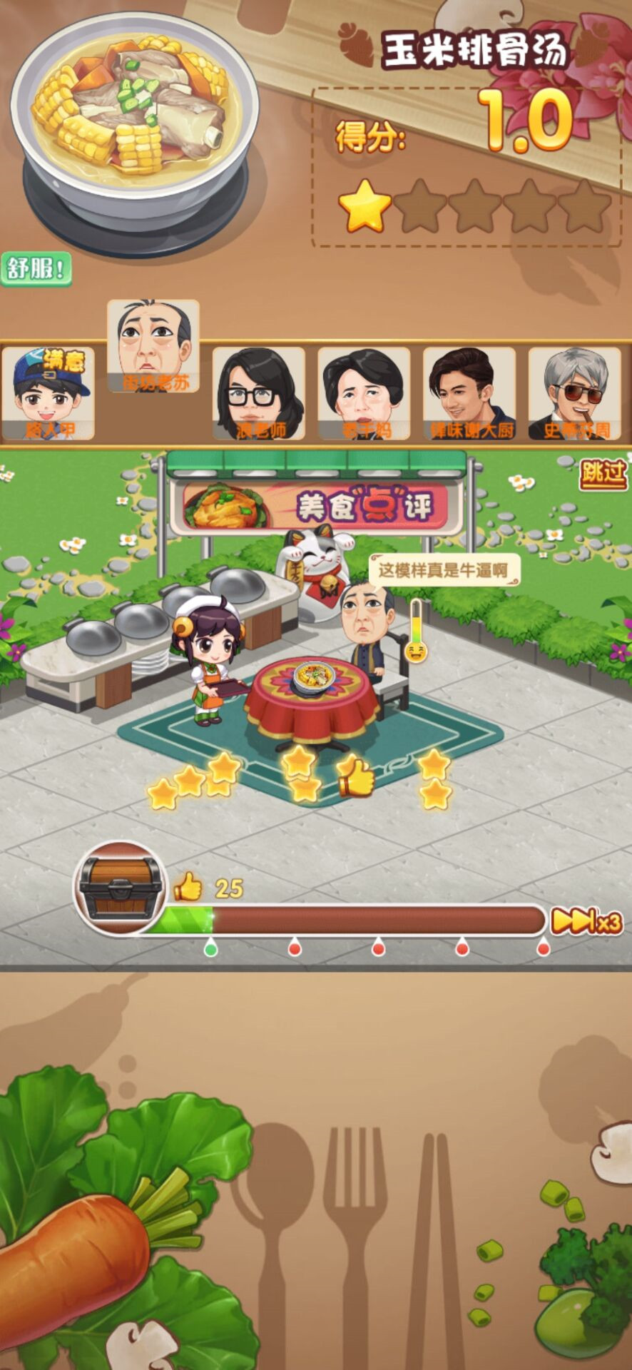 2、解锁各种客人的无理要求,提升餐厅的评价,解锁更多的菜品。
