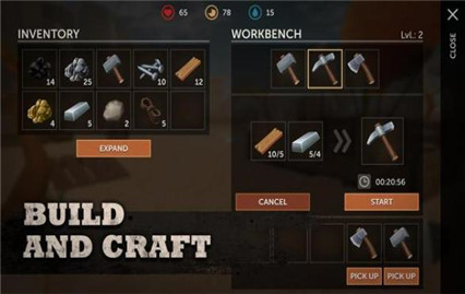 2、建立庇护所以隐藏每日炎热和夜间霜冻,找到水并为自己提供食物寻找武器,采石场资源和工艺有用的工具