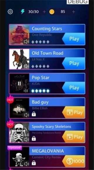5、海量游戏关卡,一首歌一局挑战,高分完成任务领取金币,用这些奖励解锁新歌。