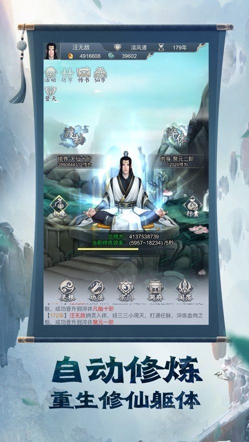 3、洞府灵脉,资源无限产出,游历天地间,斩妖除魔,结交修真者,渡劫飞升不再是梦。