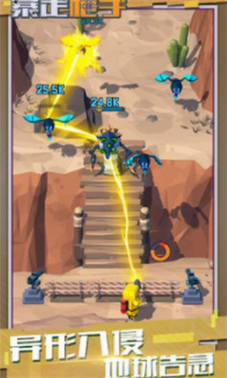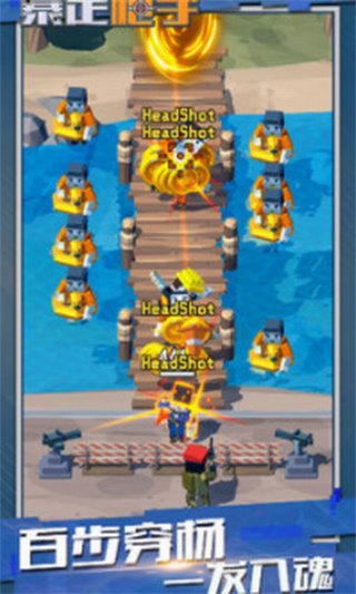 2、简单的游戏操作给大家带来欢乐挑战,轻松击杀一个个的敌人,获得海量金币,享受轻松射击过程;