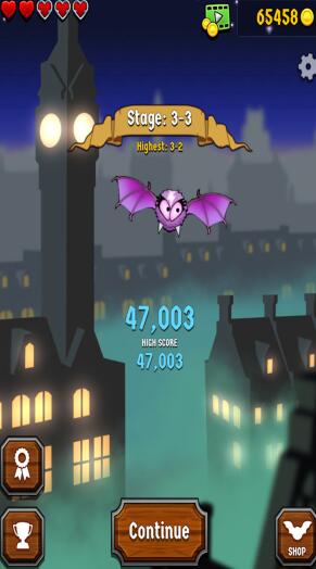 逃命蝙蝠是一款卡通风格的冒险闯关类游戏,在这里玩家需要操控可爱的小蝙蝠,在各种场景中探索冒险,旅途中到处充满了危险,灵活的避让,确保安全。能够在黎明来临之际完成任务即可。简单的操作方式,新手也能轻松驾驭。获得更多金币可以解锁更多有用的道具和炫酷的皮肤。快来下载游戏吧。