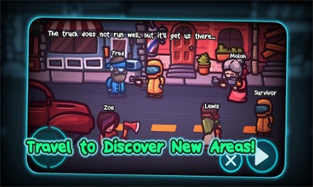 2、使用个人武器库防御僵尸的猛烈袭击,骑在卡车后面,然后用斧头砍死僵尸,升级您的设备和能力。