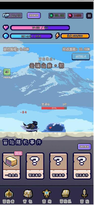 2、在随机事件出现的时候帮助勇者收集有用的资源,创建营地招募工人采集资源。