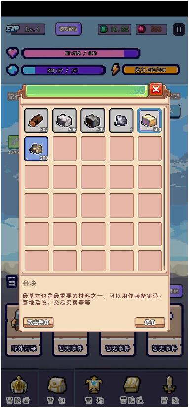 3、技能通过事件或者击败领主获得,材料通过事件里面挖矿或者旅途中拾取以及后续有了营