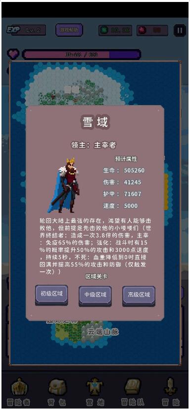 1、是一款放置冒险类游戏,目标是成为传说级冒险者,击败雪域之王主宰者成为大陆最强!
