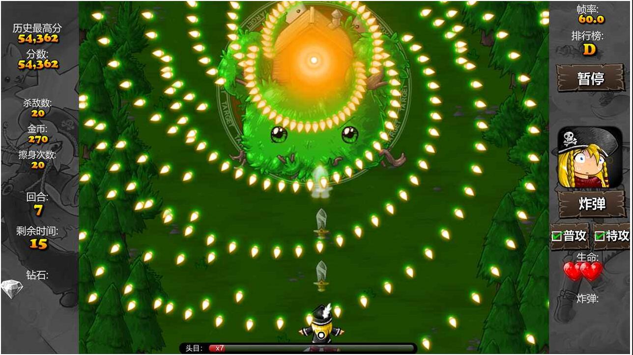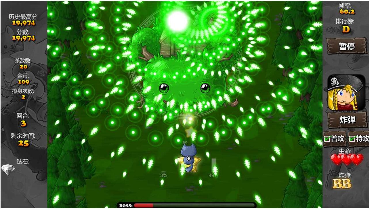 2、每个关卡中都会拥有不同的攻击子弹方式和数量,将会带来不同的难度,玩家可以随意挑战;
