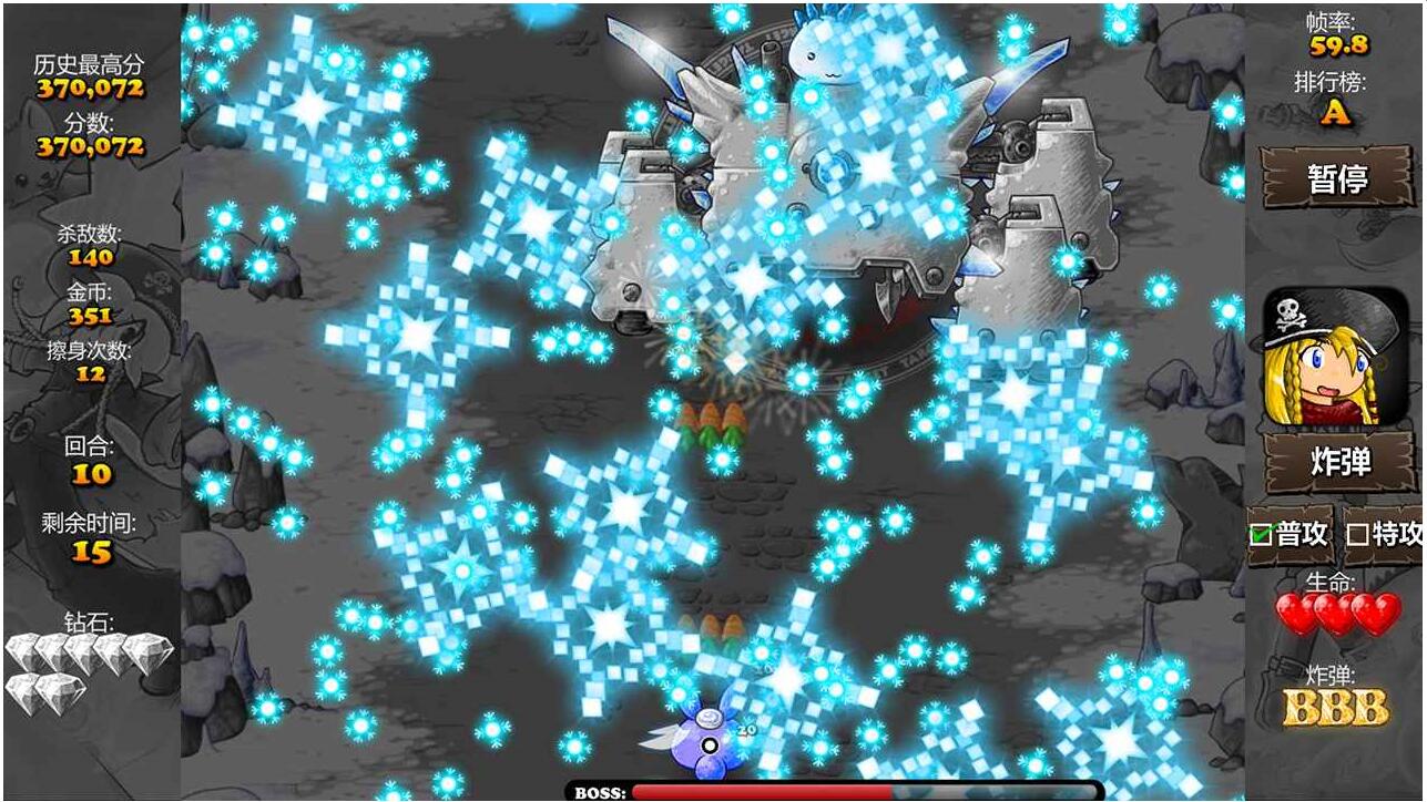 1、和一般的弹幕游戏玩法一样,躲避子弹干掉敌人。