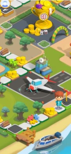 1. 海岛小镇游戏有多种玩法方法,如走格子获取金币,解锁金币在城镇中的店铺进行操作;