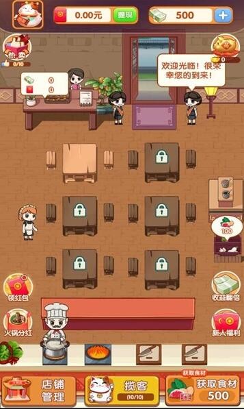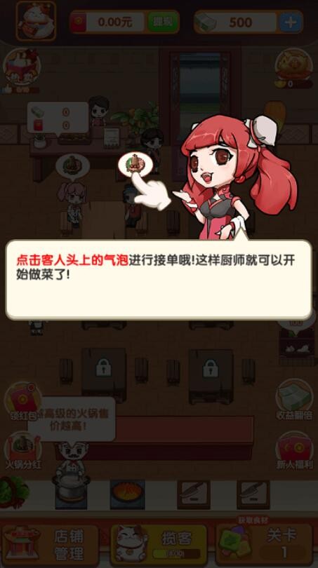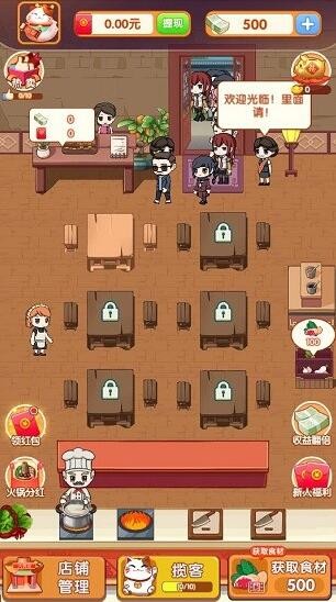2、治愈卡通风格的画面,玩家将作为老板开始经营自己的火锅店;