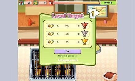 2、在这里你要根据不同的顾客提出的菜单,选择不同的烧烤串和BBQ要用的的食材进行烧烤获得顾客的满意,所获得的当天受益达到游戏关卡规定即可顺利通过下一关开启新的挑战。