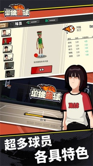 单挑篮球破解版游戏采用的是1v1的休闲竞技,以篮球为主,整个游戏的节奏偏快,考验你的眼力和手速。选择你要挑战的对手,也可以培养自己喜欢的角色,不断进行技能的升级训练。多种挑战模式都可以感受到篮球的独特魅力。多样化的玩法选择以及多样人物的选择,进行强化,请更换你的上场选手,开启篮球一对一竞技之路。