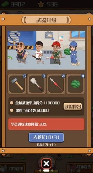 2、全局的视角掌控全部的速度和力量,摆放不同的规模的武器和道具去供更多的武馆里面的学员学习。