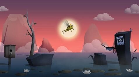 在蟾蜍逃亡的游戏中,无论雨天晴天,白天或夜晚,这只蟾蜍都在逃跑的路上。