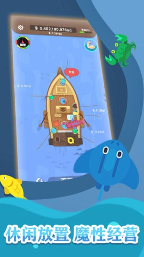 1、可以升级你的船,解锁更多的独特的鱼,收获更多的金币,换上更豪华的船