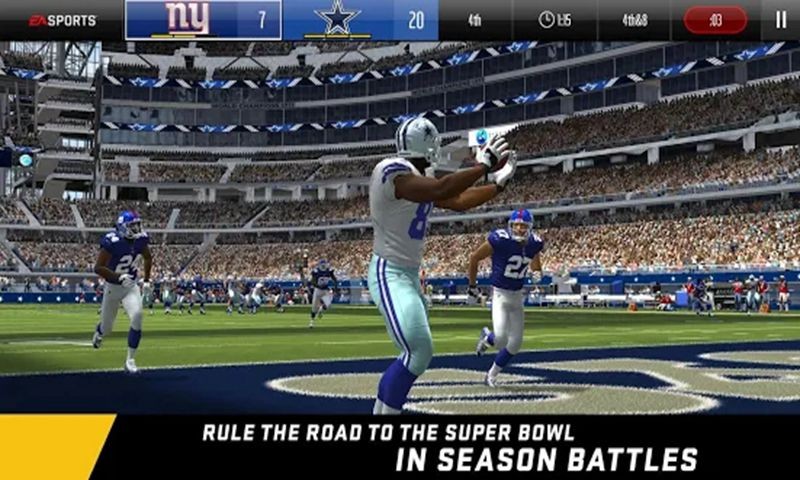 疯狂橄榄球手游游戏是一款EA出品的体育运动游戏,将会带给玩家全新的游戏体验,游戏中玩家可以招募大联盟多年前的老牌传奇球员以及现任的超级明星球员加入自己的队伍,组成一支超级全明星队。除了一众超级明星加入外,玩家还可以带领自己的队伍参加16个季后赛的游戏竞赛,不断获胜最终赢下SuperBowl“超级杯”奖杯。玩家既可以进行单人游戏,又可以与好友对战,另外还会有一个全新的LiveEvents“直播赛事”,玩家可以在此体验到跟随真实赛事动态随时更新的快速竞赛,获得更多的奖品