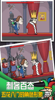 我要当国王作为一款休闲益智类游戏他的题材新颖有趣,玩家在游戏中的人物就是成为国王,为此在游戏过程中,玩家需要与国王斗智斗勇,运用自己的智慧去展开刺杀国王的行动,相信你可以成为新的国王的!