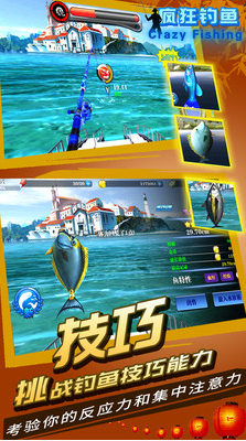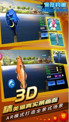 《疯狂钓鱼》是一款钓鱼题材的休闲类手游,游戏将玩家带到了世界各地不同风情的钓鱼场地,包括了国内长江、洞庭湖、大堡礁和黄金海岸等。每个钓鱼场都以细致的3D表现手法进行展示,玩家将会体验到在充满了异国情调的水域钓鱼的乐趣。同时加上游戏风格多样的配乐,将会令你享受钓鱼乐趣的同时,还能得到听觉上的享受。