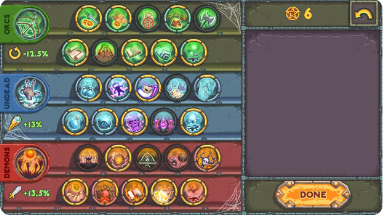 过关后可要利用获得的技能点数升级属性。有足够的神力(MANA)可使用更多法术,包括:CUT OUT(清除树木),FRENZY(增加攻击范围)及METEOR(陨石)。