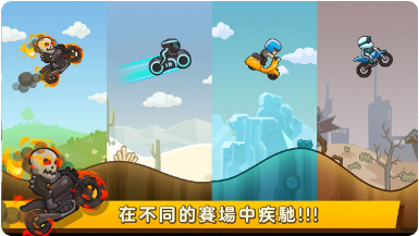 游戏使用当下最新的Unity 3D物理引擎,高清还原了《越野摩托》(Excitebike)的经典玩法,并在此基础玩法再度升级,使游戏更具乐趣。