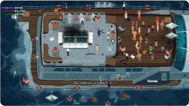 在吵闹的狂欢派对当中,作为一个非常厌恶这种派对的人,所有人都是你的目标。偷偷收集在场所所有受害者的喜好,慢慢将他们对你的好感度提高,扮演一位非常喜爱派对的人,需要你大量的模仿和伪装他们。一个接一个的杀了他们注意不要被发现!