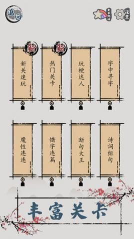 1、在游戏中,玩家需要将汉字完整的放入汉字中,并根据每个汉字的特点对图形进行组合,并根据字形结构将文字进行分类。