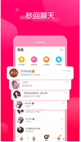 秒回聊天交友,消息立马直达,随时随地想聊就聊,男神女神萌新在线,开启房间一起玩