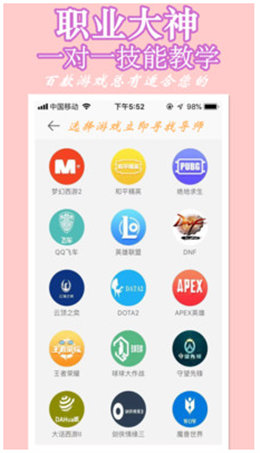 专业的电竞职业选手,实现一对一技能教学,百款游戏任你选择