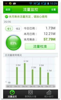 双卡流量管理功能,设置不同的卡费套餐,进行限额提醒,更好的管理双卡流量