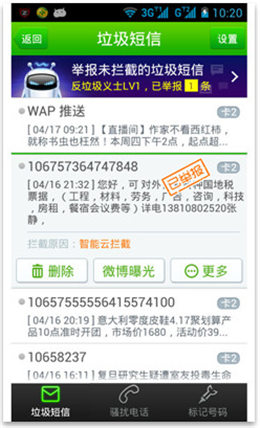 双卡垃圾拦截功能,全面拦截垃圾骚扰文件