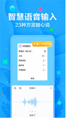 智能识别语音输入,支持23种方言,说说就能转为文字,让输入更加方便快捷
