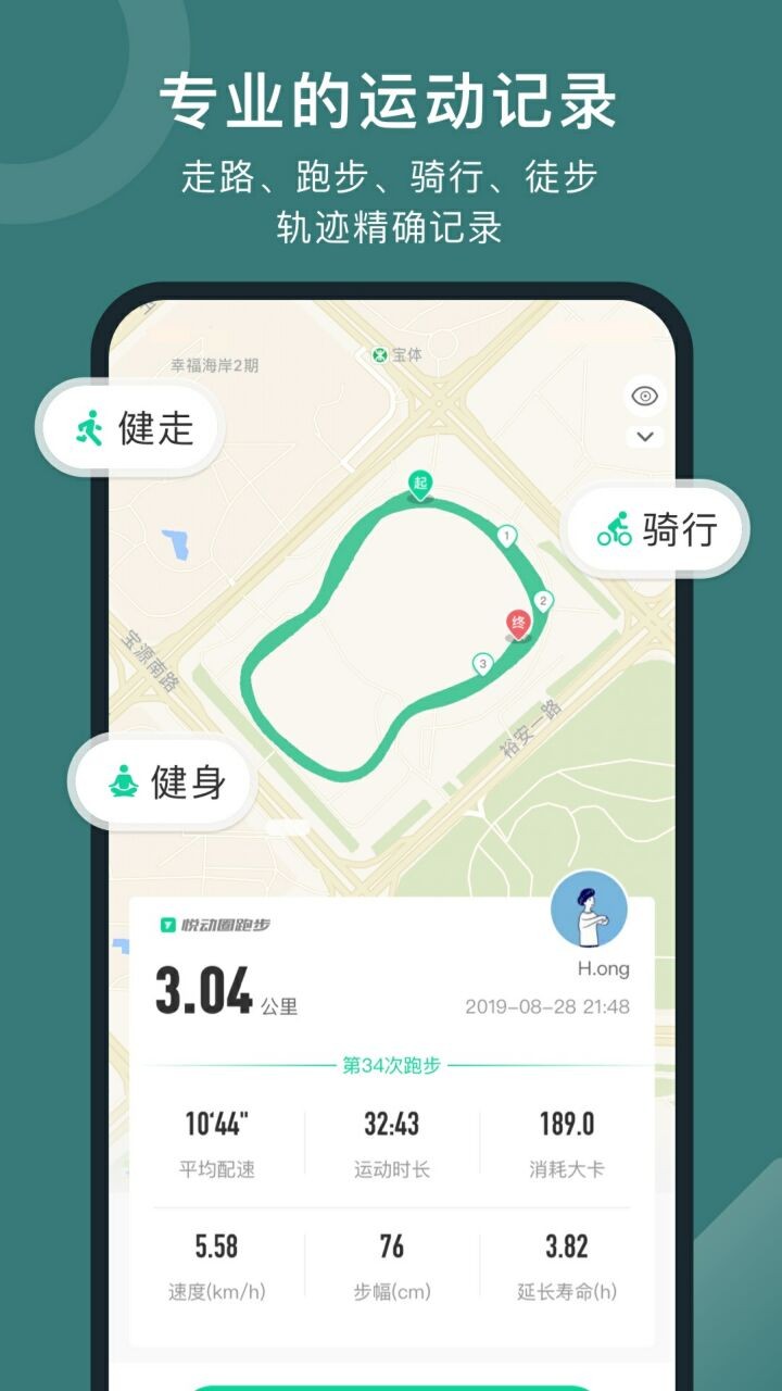 支持跑步、骑行、健身三种记录模式,海量的健身视频,手把手教你健身;计步高达95.8%准确率,远胜市场上同类app。