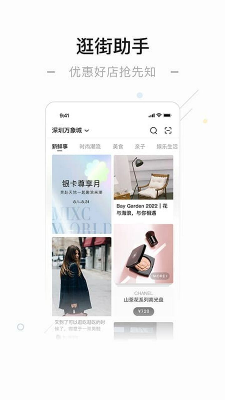 一点万象APP是华润置地为顾客量身打造的一款创新型应用APP,融合行业前沿技术手段和优秀品质服务为顾客带来全新线上线下全渠道新体验。具有线下带您找店、智慧寻车缴费、自助积分等核心功能,线上查询预览优惠活动及商品信息、参与团购、秒杀、品牌馆等版块的好物选购、也可在积分商城兑换心仪的宝贝,为用户营造线上线下一体化、便捷贴心的场景服务,让您享受全新的逛街体验。