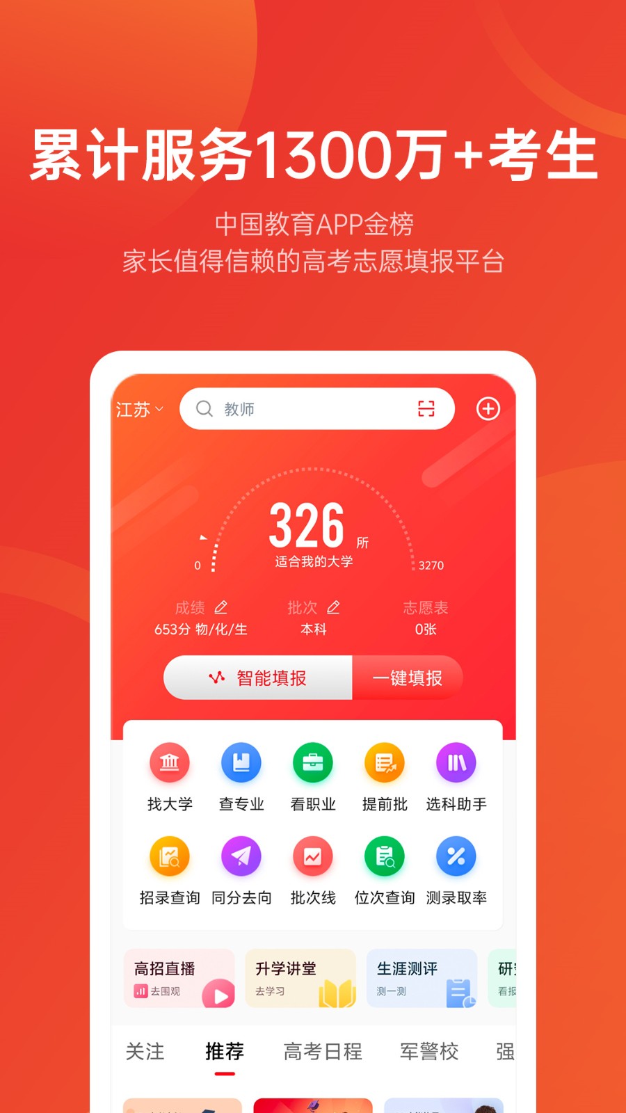 优志愿app是一款专门为高中生填报志愿所推出的服务平台,2021高考即将结束啦,也许有很多学生家长开始纠结在哪所大学的问题啦。现在有了优志愿app这款应用,大家就不用再那么纠结啦,它能够帮助你们专业智能分析志愿填报、院校智能推荐还有模拟填报,私人订制等服务,非常的专业又靠谱。如果你喜欢这款优志愿app,快来下载试试吧。