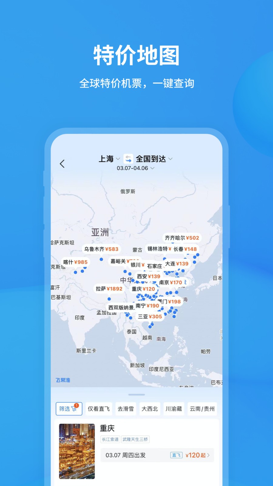 轻松掌控您的飞行时间。您可以查看中国所有航班的实时状态信息。提前了解影响航班准点的各种情况,实时获得航班的起飞、到达、延误、取消、返航、备降信息。