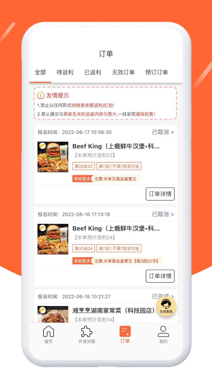 歪麦霸王餐软件是一款非常有趣的外卖平台,这个平台的优惠非常的多,用户下载后还可以去领取到各种优惠券,线上的各种美食,生鲜购物,都是可以去自由的选择的,而且还有你的运气只要够好,就可以去抽中霸王餐,这样就可以去免费食用你点的餐,而且你下单的订单详情可以去随时的查询,可以去帮助大家更好的了解自己订单的详情,非常的惠民,还可以在每一次的下单中帮助用户剩下不少的钱,非常的便利。
