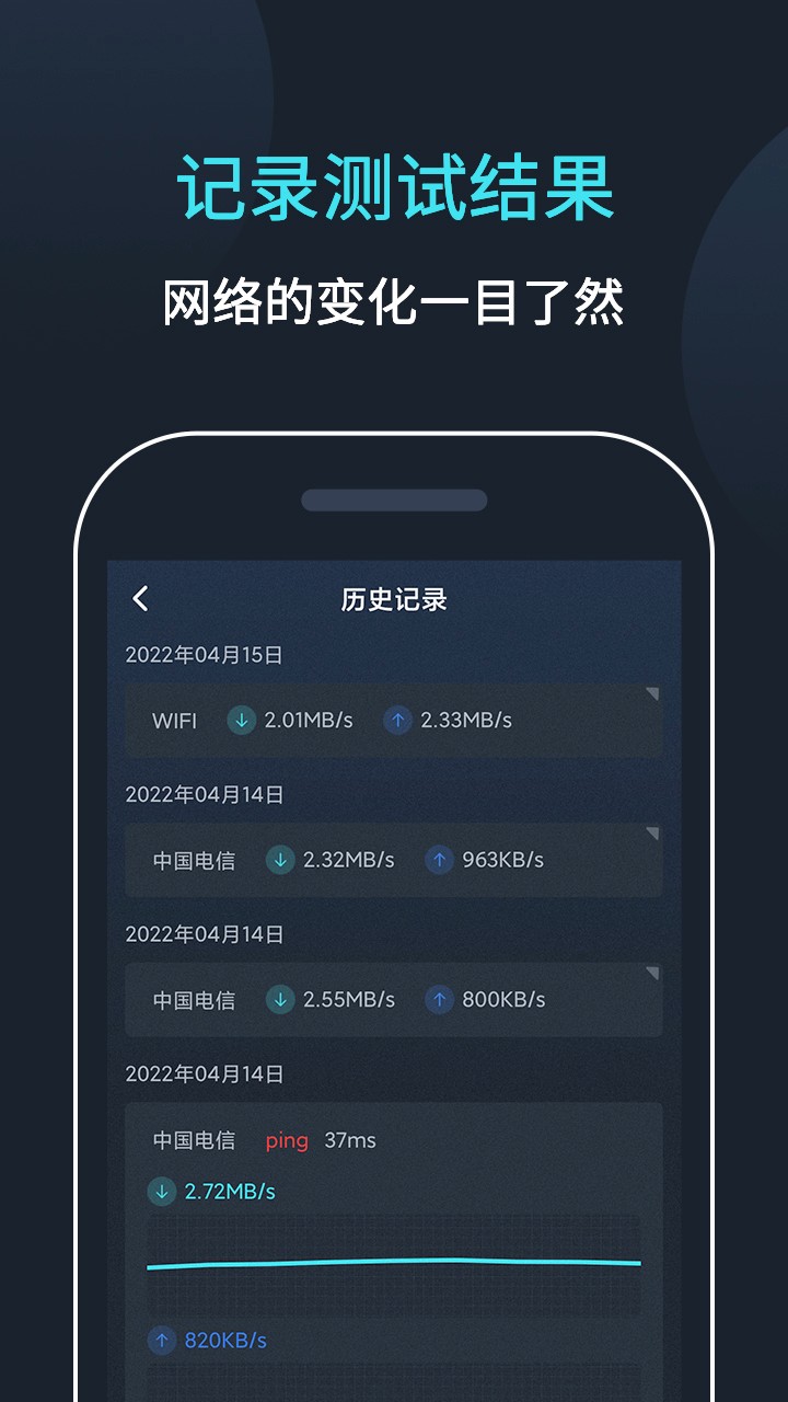 1、为你的手机网络测试提供下载.上传和延迟测试。