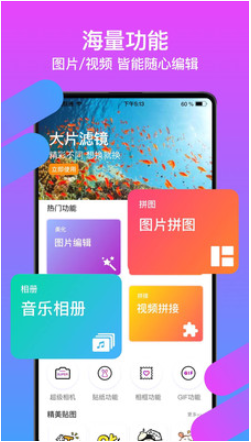 【多样素材】卖萌、节日、可爱......各种风格的创意贴纸供你选择,多种滤镜展现图片别样风格,还可以添加不同颜色的文字,助你自由表达!爱修图,秀出你的创新个性。